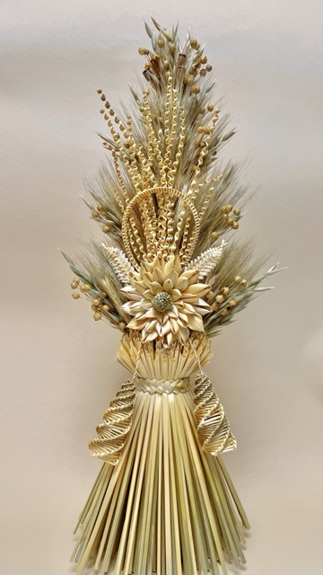 – Перед плетінням її потрібно обов’язково обдати окропом і десь на 10 хвилин замочити у гарячій воді. Тоді вона розмякне і буде більш піддатливою у роботі. На дотик дуже ніжна, колоски дуже м’які.