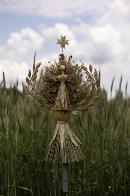 – За цим матеріалом не підеш до магазину, придбати його неможливо, тож ми вирощуємо все самостійно. Наше господарство знаходиться у Шульгівці. Ми маємо ділянку, яку засіваємо пшеницею, житом, ячменем і льоном. Наприкінці травня вже жнивуємо, дуже рано, бо для плетіння потрібно все зібрати , як воно тільки зацвіло, щоб там не було зернят. Сіємо з решетом, вручну, збираємо серпами, якими ще користувались бабуся та дідусь. Потім усе збирається у снопи, сушиться. Висушені снопи обробляємо. Стебельця розрізаємо на смужки, розділяємо солому та колоски. Процес підготовки матеріалу займає майже рік. Одразу заготовляємо багато , тому завжди є з чим працювати. Солома з часом не псується, навпаки, стає більш яскрава, золотава. Чим довше вона лежить – тим красивішого кольору набуває.