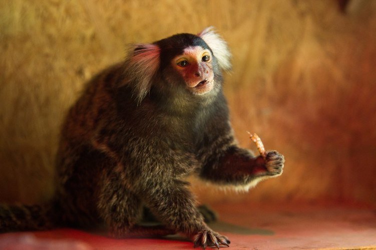 Для справки: белоухая игрунка (callithrix aurita) – это типичный представитель самых маленьких приматов на планете, семейства игрунковых. Водятся эти обезьянки в вечнозеленых субтропических лесах Юго-Восточной Бразилии. Среди других игрунковых они отличаются особой внешностью. Из-за белой шерстки, которая растет над ушами, их прозвали белоухими. Это общительные животные. Создаётся впечатление, что игрунки без остановки щебечут что-то друг другу. Характерным их признаком также является умение издавать свист на грани ультразвука. В настоящее время численность популяции белоухих игрунок низка, вид занесен в Красную книгу как уязвимый.