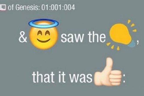 Текст Священного Писания передали в виде графического языка идеограмм и смайликов, используемого в электронных сообщениях и веб-страницах. Об этом сообщает Эспрессо.TV со ссылкой на The Guardian.