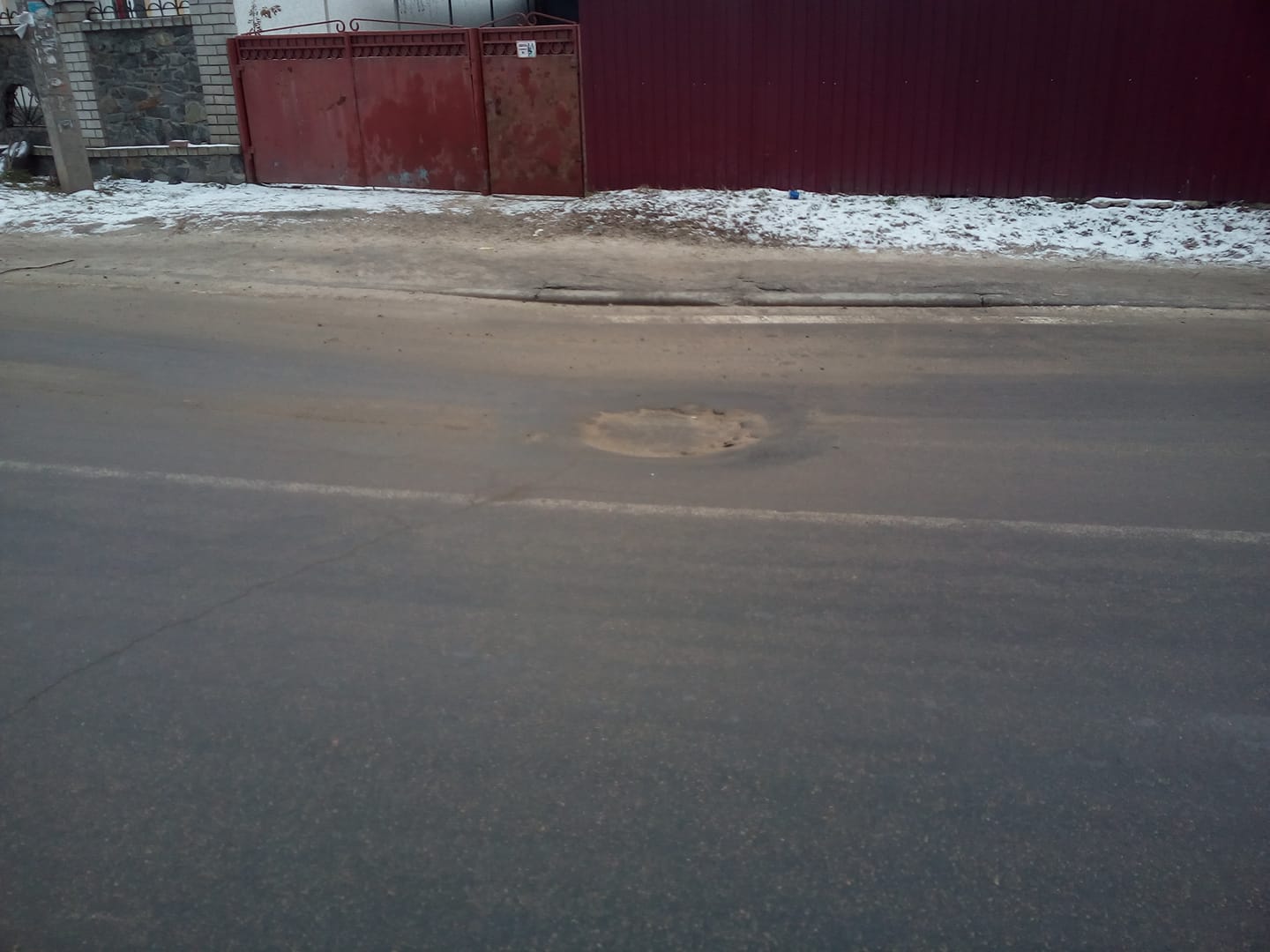 Большая яма на улице Днепра «угрожает» водителям (Фото)
