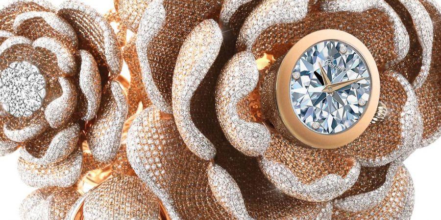 Общий объем бриллиантов в часах – 50,01 карат и 15 858 бриллиантов. Часы получили название Mudan, что с китайского языка переводится как пион. Именно этот цветок вдохновил дизайнеров на создание украшения. Пион в китайской культуре считается королем цветов, он символизирует благородство, честь и богатство. Стоимость часов – $500 тыс. На Baselworld Coronet представил также копии часов Mudan с меньшим количеством бриллиантов.