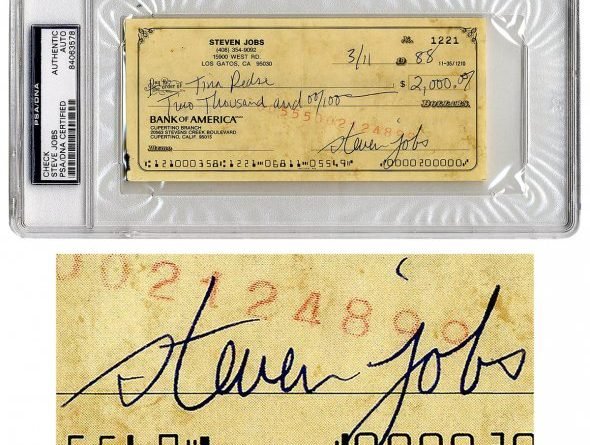 Чек з підписом Джобс виставлено на продаж в якості рідкісного лота. Аукціон проводить електронний майданчик Nate D. Sanders Auctions, яка визнана лідером у галузі торгів, пов’язаних з документами та автографами. Пише gazeta.ua.