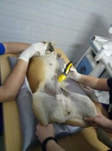 Волонтеры днепровского приюта «Друг» спасают собаку Бельвиту, которая находиться между жизнью и смертью. Ее привезли из военного городка. Она плакала всю дорогу и плакала в клинике. Рентген показал перелом таза и смещение одного позвонка. УЗИ показало инвагинат. Эти страшные травмы – последствие удара машины.