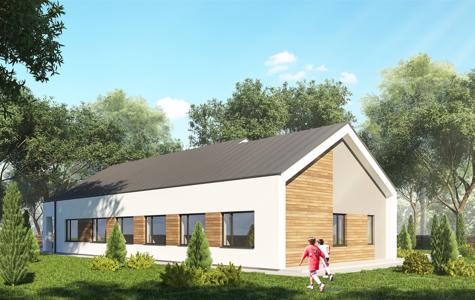 «Малий груповий будинок – одноповерховий, його площа – понад 268 кв метрів. Усередині – 5 спалень, кожна – на двох дітей, а ще – вітальня, сумісна з кухнею та обіднім залом, комора для зберігання речей, пральня. Для вихователів – окрема кімната. На дворі – дитячий майданчик з тренажерами, зона відпочинку», – розповіла дружина Президента України Марина Порошенко.