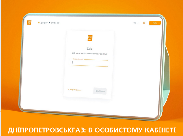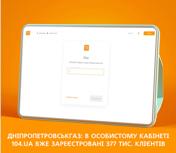 Дніпропетровськгаз: в Особистому кабінеті 104.ua вже зареєстровані 377 тис. клієнтів