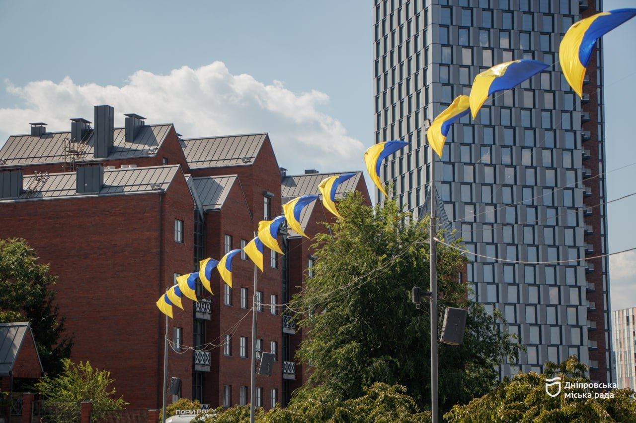 Парк Шевченка оформили у синьо-жовті кольори, прикрасили колонаду у стилі петриківського розпису, додали символічні соняхи та понад 20 державних прапорів на оглядовому майданчику. У парку Писаржевського облаштували фотозону та декоративне розташування прапорів.