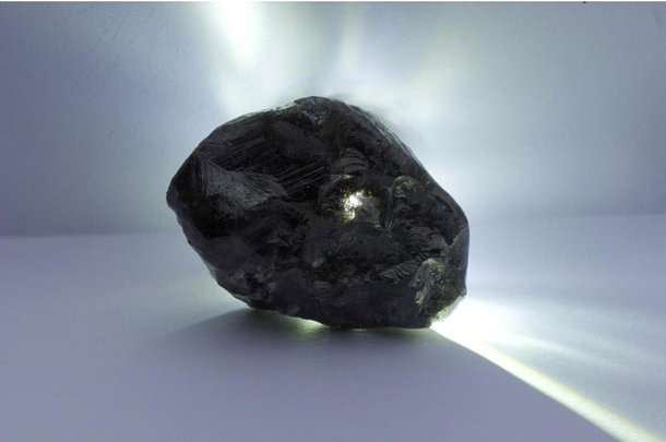 Алмаз «Севело». Он темного цвета из-за покрывающей его углеродной оболочки. Компания Lucara Diamond обнаружила камень с помощью рентгеновских установок.
