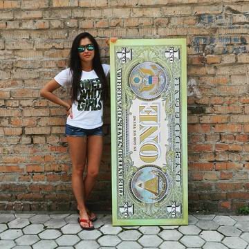 В Днепропетровске живет художница Екатерина Кирина, которая на полутораметровых холстах изображает доллары. Размеры картин варьируются в зависимости от номиналов банкнот.