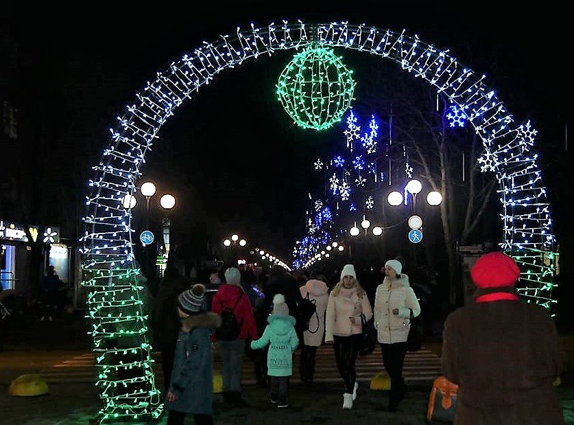 Не лише розкішна зелена красуня, а вся площа мерехтіла новорічною ілюмінацією. Цьогоріч її стало ще більше. Додалися яскраві шари, ялинки-ліхтарі, дерева одягли в сяючу ілюмінацію, а вхід на площу оздобили двома новорічними арками.