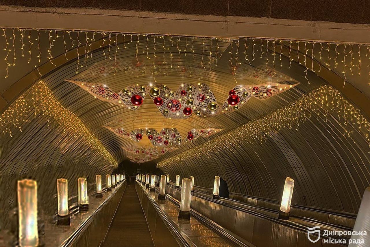 Торік у Дніпрі працювали чотири святкові локації — на Успенській площі, вулиці Короленка, проспекті Дмитра Яворницького та у сквері на Слобожанському проспекті. Цього року їх також планують прикрасити, використовуючи наявні безпечні декорації. Водночас частину великих конструкцій, зокрема 20-метрову ялинку та фігури персонажів, у метро встановлювати неможливо через обмежений простір перону.