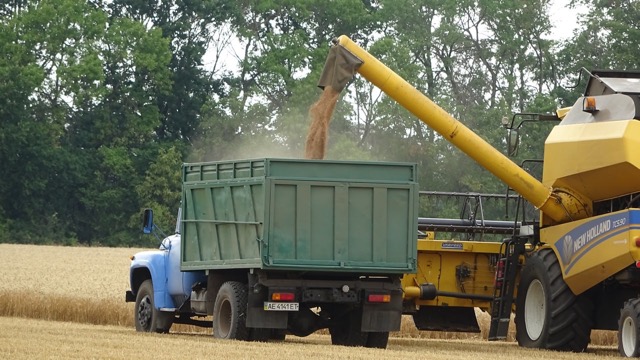 На полі жнива веде потужний комбайн New Holland TC5.90. Попри свою ефективність, така техніка — розкіш для багатьох фермерських господарств. Зібране зерно завантажують у старий, але надійний ЗІЛ-130 — легендарну вантажівку, яка досі служить аграріям вірно.