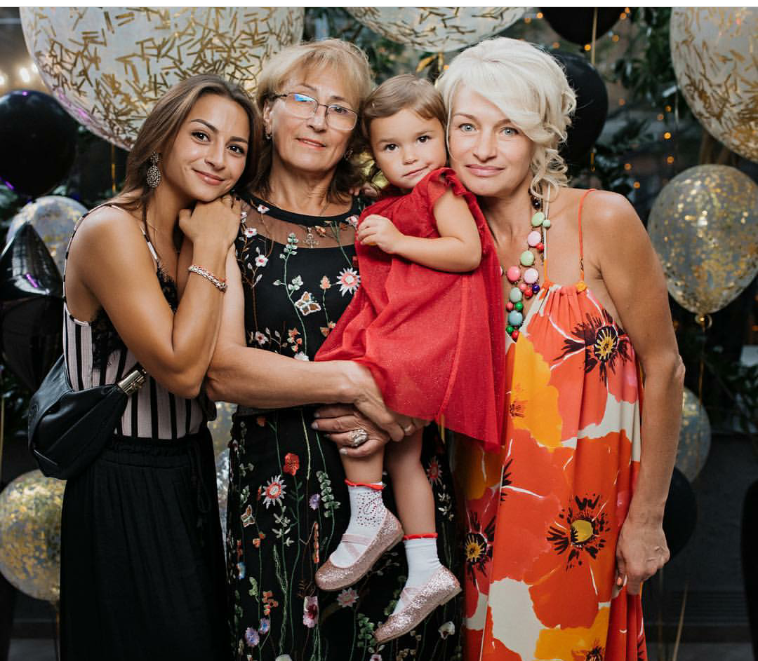 На снимках – Илона со своим мужем и точкой, а также «фантастическая четверка»- свекровь, мама, доченька и внучка.