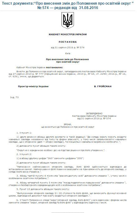Кабмін зменшив необхідну кількість учнів з 360 до 200 осіб для відкриття опорного загальноосвітнього навчального закладу. Про це йдеться в постанові уряду №574 від 31 серпня 2016 року. У кожної опорної школи будуть філії – не менше 3 сільських шкіл. Пише “Українська правда. Життя”.