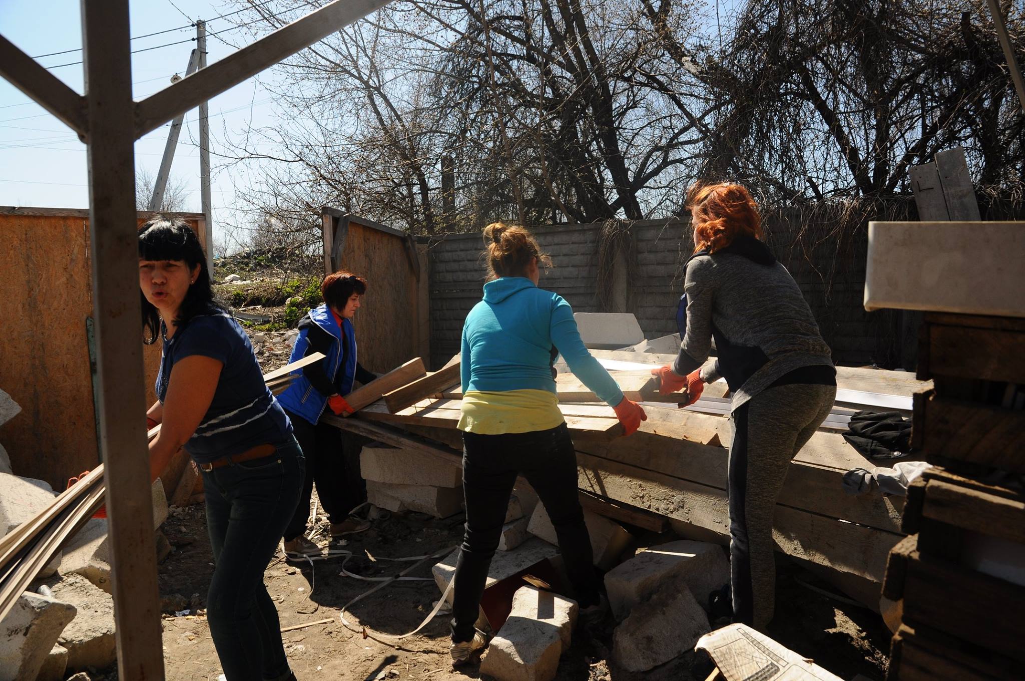 Вокруг дома с начала зимы остались кучи поломанного газобетона вперемешку с целым, а также другим строительным мусором, досками, поддонами. «Эти горы были в рост человека по всему периметру дома. Навалившись все вместе, мы таки осилили эту работу! Также за эти два дня погрунтовали второй этаж под покраску, расчистили и погрунтовали почти все комнаты перед штукатуркой. Заложили проводку на первом этаже, покрасили все входные двери и перенесли кафель с одного конца двора в другой, вставили последнюю дверь в доме. Работы предстоит впереди еще много! Но она уже не будет такой физически тяжелой, а даже интересной!», – говорит Алеся.