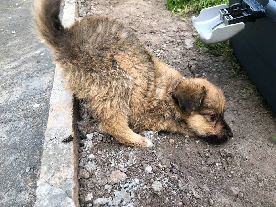 Щенка Бимку подкинули в днепровский мини-приют через забор. Крошка громко плакал от страха, от невозможности опереться на обе передние лапки. Волонтеры Днепра думали, что у щенка они сломаны.