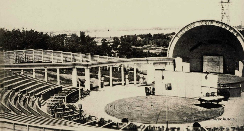 В 1930-е годы тяга народных масс к художественному творчеству и самодеятельности вызвала необходимость создания в Днепропетровске специальных зрелищных объектов. С этой целью в 1935-1936 годах в восточной части парка имени Т.Г. Шевченко было построено грандиозное сооружение под открытым небом – Зелёный театр. Авторами его проекта выступили днепропетровские архитекторы Генрих Львович Швецко-Винецкий и Владимир Фёдорович Ковалевич. Зелёный театр был открыт в 1936 году. Рассказывает Екатеринославъ – Днепропетровск.