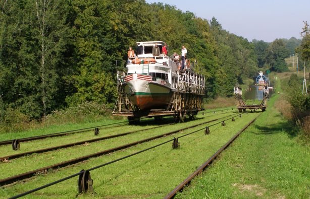 Популярность каналу, длиной около 240 км, принес сравнительно небольшой участок (9,5 км) с пятью каскадными озерами и большим перепадом высот — около 100 м в целом. Навигация с помощью шлюзов здесь невозможна, поэтому катера доставляют к месту назначения по рельсам.