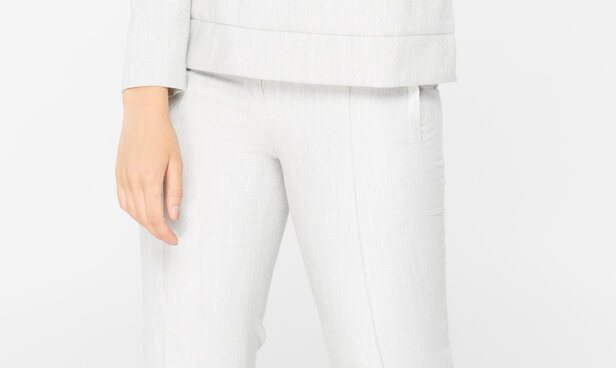 5. Женщинам с крупными формами рекомендуем обратить внимание на прямой классический покрой. Лампасы на брюках по бокам сделают силуэт визуально стройнее.