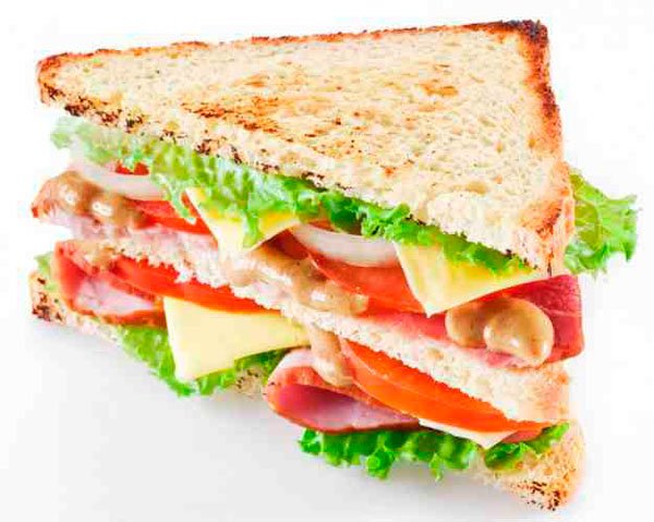 Ну а из чего делают колбасные изделия, мы все хорошо знаем. Если, конечно, речь не идет о домашней колбасе. В них содержится масса различных вкусовых добавок и консервантов, которые очень вредны для организма. Но если вы хотите полотно позавтракать, тогда вместо белого хлеба возьмите цельнозерновой, ржаной или хлеб с отрубями. Вместо колбасы возьмите запечённую индейку, куриное филе со специями. Это и вкусно и полезно.