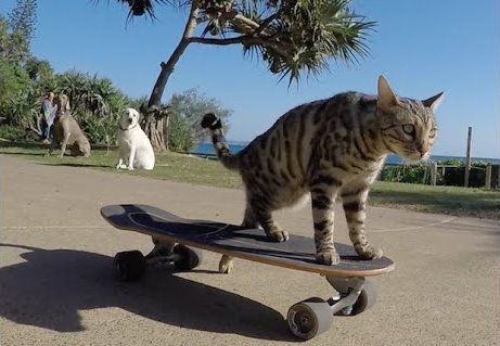 Кіт, який вміє кататися на скейтборді (відео)