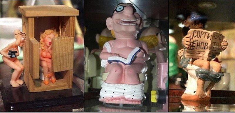В музеї можна побачити сувеніри на туалетну тематику від стародавніх часів до сьогодення, виготовлені з різноманітних матеріалів: срібла, кераміки, фарфору, дерева, металу, пластику й навіть шоколаду.