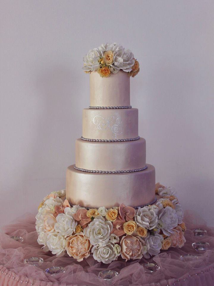 Это был  интересный проект. По словам мастера, сложность торта была в сахарных цветах, а вернее в их количестве и времени на их изготовление.