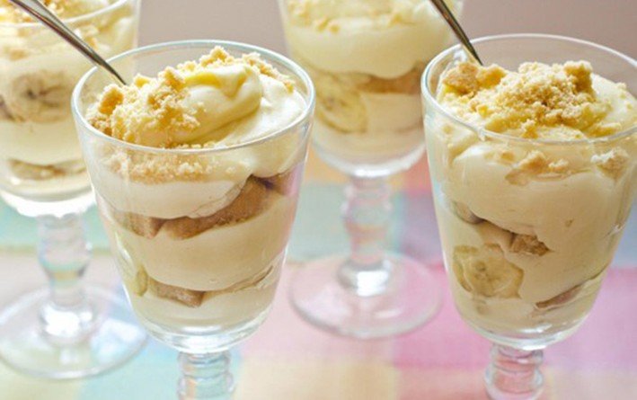 Банан очистить, порезать на кусочки и отправить в блендер вместе с йогуртом и творогом. Взбить массу на средней скорости. Добавить ложку меда, продолжая взбивать еще несколько минут. Должен получиться воздушный густой крем. Готовый десерт разложить в креманки и украсить кусочками бананов.