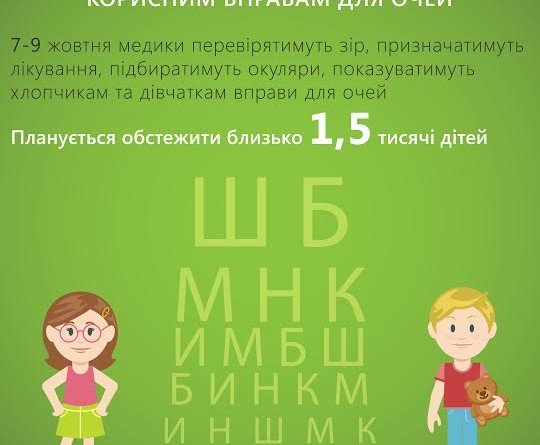 Лікарі з Дніпропетровська, Павлограда, Новомосковська, Дніпродзержинська та Кривого Рогу прийдуть до малечі з цілим арсеналом – медичне обладнання, дошки для перевірки зору. 7-9 жовтня медики перевірятимуть зір, призначатимуть лікування, підбиратимуть окуляри, показуватимуть хлопчикам та дівчаткам вправи для очей.