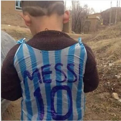Знімок хлопчика вперше з’явився в турецьких блогах, повідомляє Independent. У них говорилося, що малюк живе в зруйнованому війною місті Дахук в Іраку. Він зробив собі майку Ліонеля Мессі з пакета.