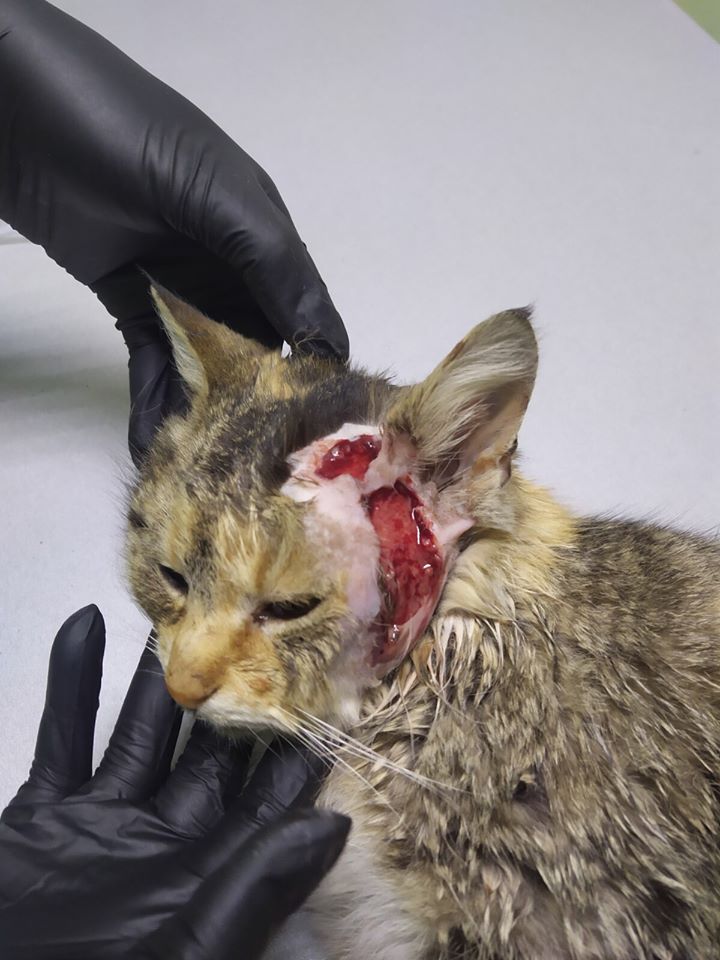 В Днепре кошечка Нюша борется за свою жизнь, но без помощи небезразличных днепрян у нее нет шансов. У несчастного животного сорван лоскут кожи, видны мышцы и кости черепа.