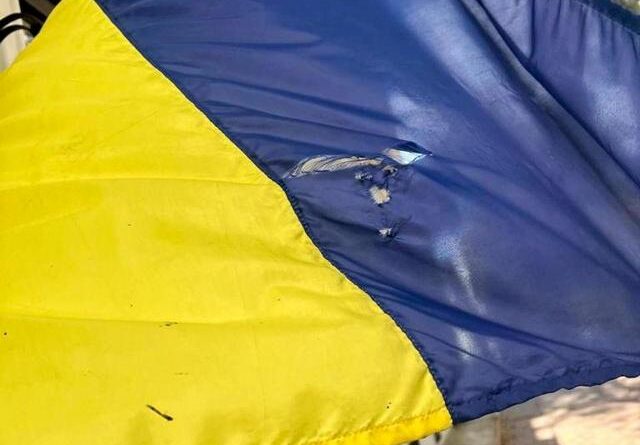 Надвечір молодик схопив Державний Прапор, який був встановлений на фасаді будинку, та почав смикати його, доки не розірвав.