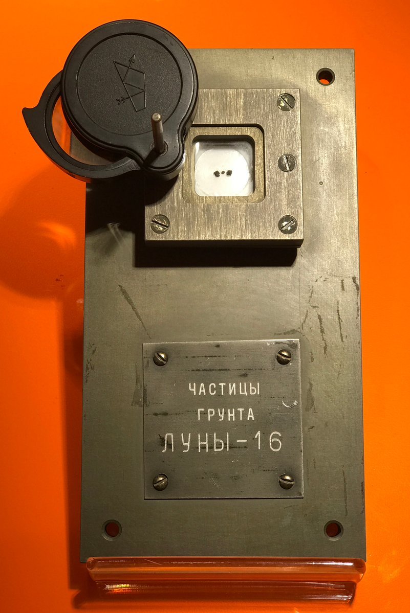 Три фрагмента діаметром від 1 до 2 мм пішли з молотка за 855 тисяч доларів. Фрагменти місячного ґрунту були укладені в металеву коробку з написом “Частинки ґрунту Місяця-16”. На коробці є збільшувальне скло.