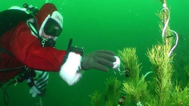 На 20-метровой глубине Черного моря одесские дайверы установили новогоднюю елку. Полутораметровую сосну украсили специально подготовленными игрушками и светодиодными гирляндами. Сообщает УРА-Информ.