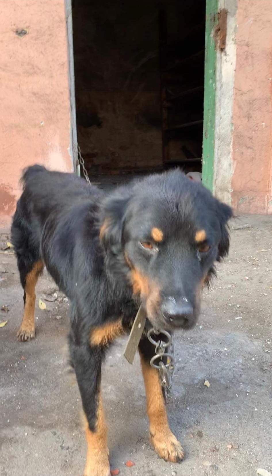 Волонтеры забрали пса. Нашли для него временную передержку с, мягко говоря, неважными условиями. Он сидит на цепи и постоянно «плачет», просит ласки, не «соглашаясь» с тем, что его предали. Время передержки заканчивается, и хвостатый сирота, похожий на ротвейлера, у которого нет даже имени, вновь окажется на улице, где кому-нибудь захочется от него избавиться, но уже более «кардинальным» способом.