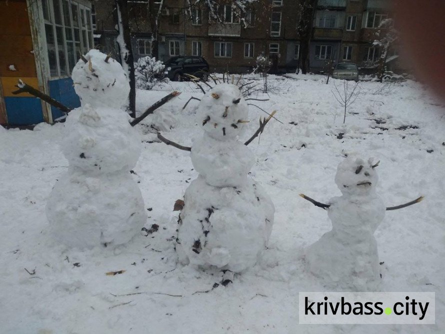 Первым снеговым трио в соцсетях похвалился криворожанин Александр Телегин, подписав пост, и тем самым привлек к “конкурсу” других пользователей: ” А где Ваш снеговик? Поспешите, пока снег не вывезли!”.