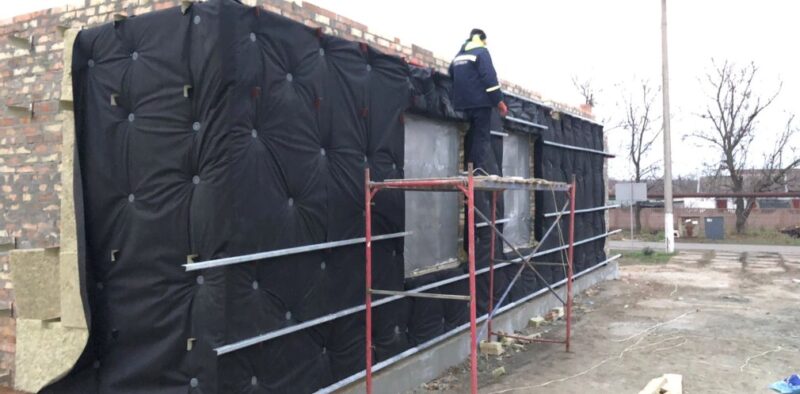 Подрядчики уже построили кирпичную «коробку» здания, смонтировали плиты перекрытия, сейчас строят внутренние перегородки. Также залили пол бетонной стяжкой, установили окна, утеплили цокольную часть, начали утепление фасада и перешли к кровле.