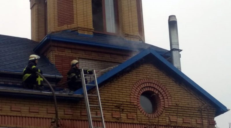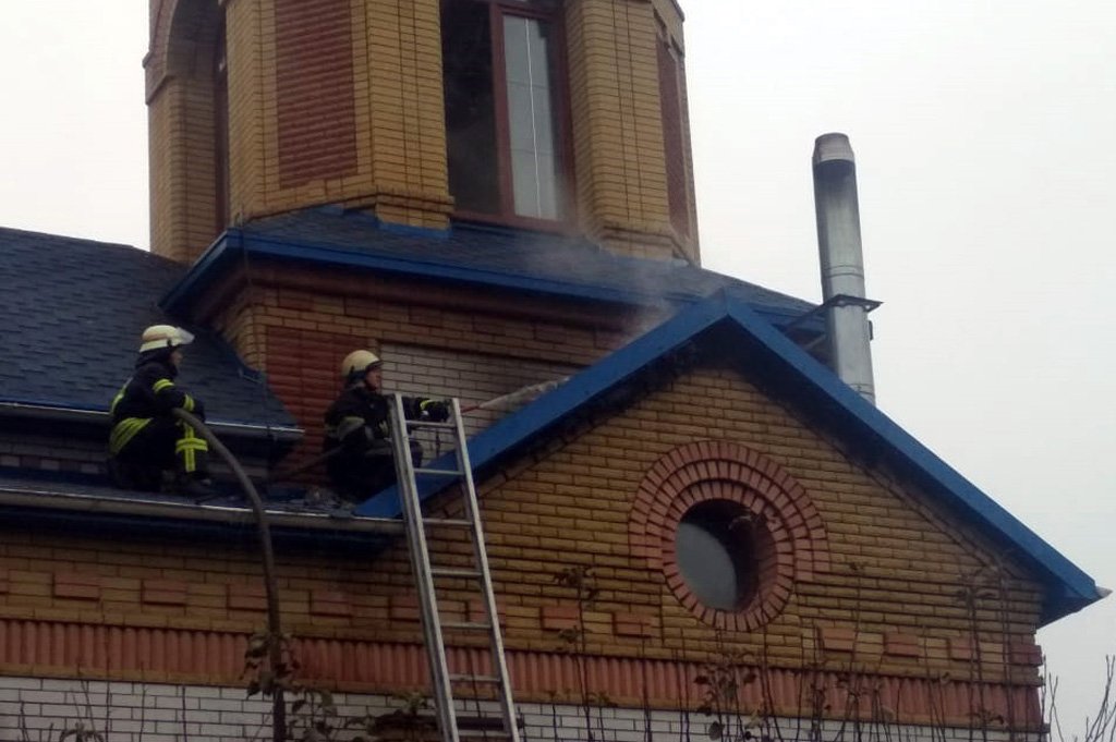 За вказаною адресою терміново було направлено відділення державних пожежно-рятувальних частин  Прибувши на місце, рятувальники встановили, що займання виникло на даху двоповерхової будівлі храму.
