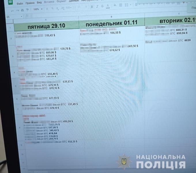 Отримані в такий спосіб кошти переказували на електронні гаманці, картки підконтрольних осіб, а також переводили у криптовалюту, які надалі конвертували в готівку на території України. За попередніми підрахунками, злочинний бізнес приносив його власникам від 250 до 500 тисяч доларів США щомісяця.