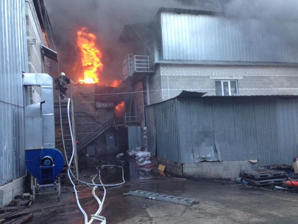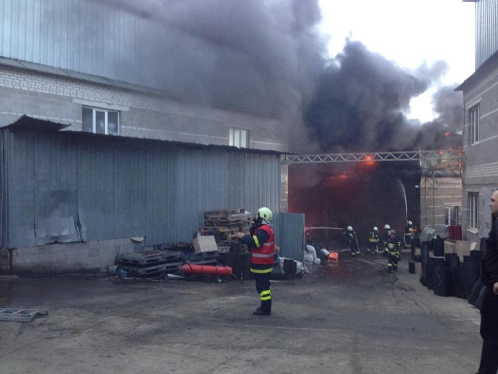 За попередніми даними орієнтовна площа пожежі складає 3000 м.кв. Складність гасіння полягає у великому горючому навантаженні в ангарах, а саме пластикова сировина, обладнання та готова пластикова продукція.