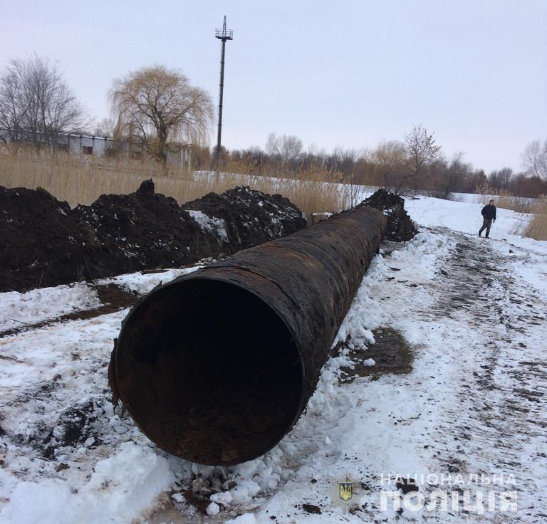 Чоловіки встигли демонтувати майже 20 метрів труб. Ще близько 300 метрів було підготовлено для вирізки. Подія сталася 15 січня в полі біля с. Терни Юр’ївського району. Чоловіки намагалися довести правоохоронцям, що демонтаж проводиться на законних підставах, але крім слів довести свою правоту документально не змогли. Встановлено, що труби перебувають на балансі Павлоградського міжрайонного управління водного господарства. Техніку, за допомогою якої здійснювався демонтаж, та газобалонне обладнання для різкі труб, було вилучено та накладено арешт.