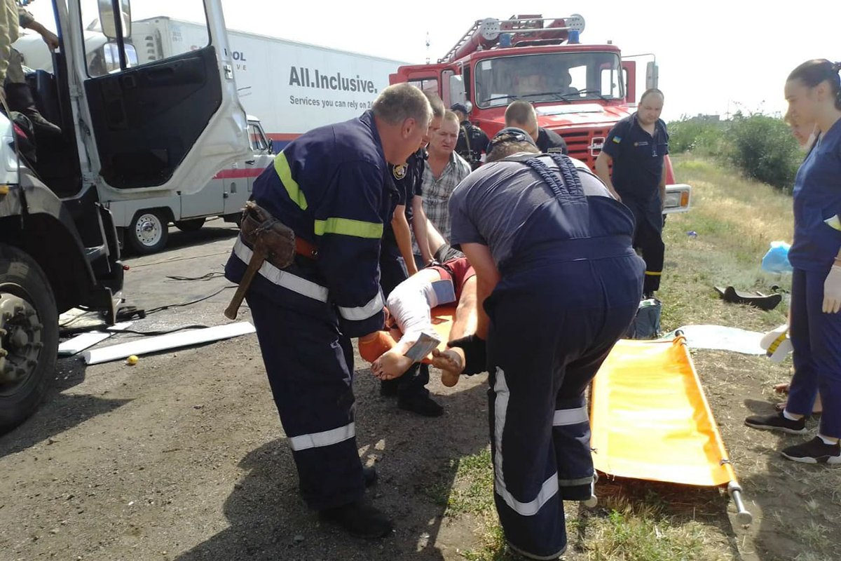 Водія одного з транспортних засобів затиснуло в понівеченому внаслідок удару автомобілі. Водія вантажного автомобіля DAF-95, громадянин 1982 року народження, до приїзду пожежно-рятувального підрозділу, було госпіталізовано працівниками швидкої медичної допомоги з попереднім діагнозом – забиття верхніх та нижніх кінцівок.