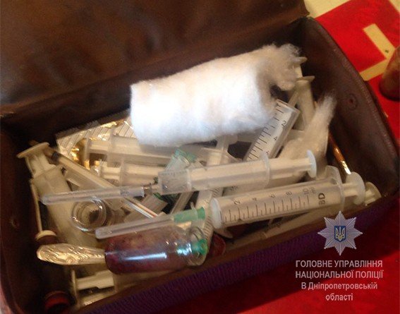 Під час обшуку в квартирі були виявлені інгредієнти і різні ємності для виготовлення наркотичної речовини «дезоморфін», тобто «крокодил», медичні шприци різного об’єму із залишками «дезоморфіну».