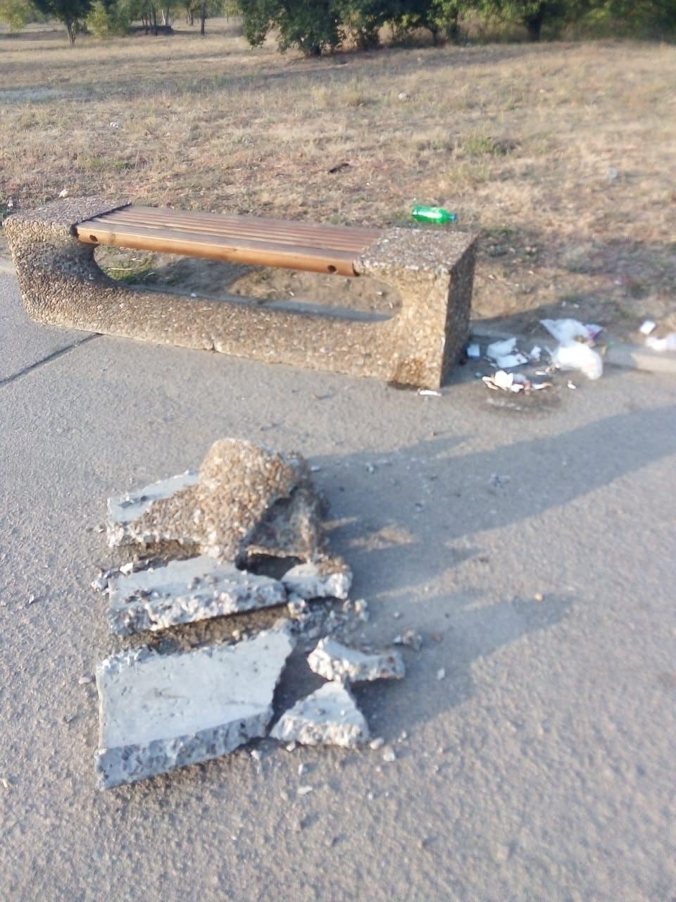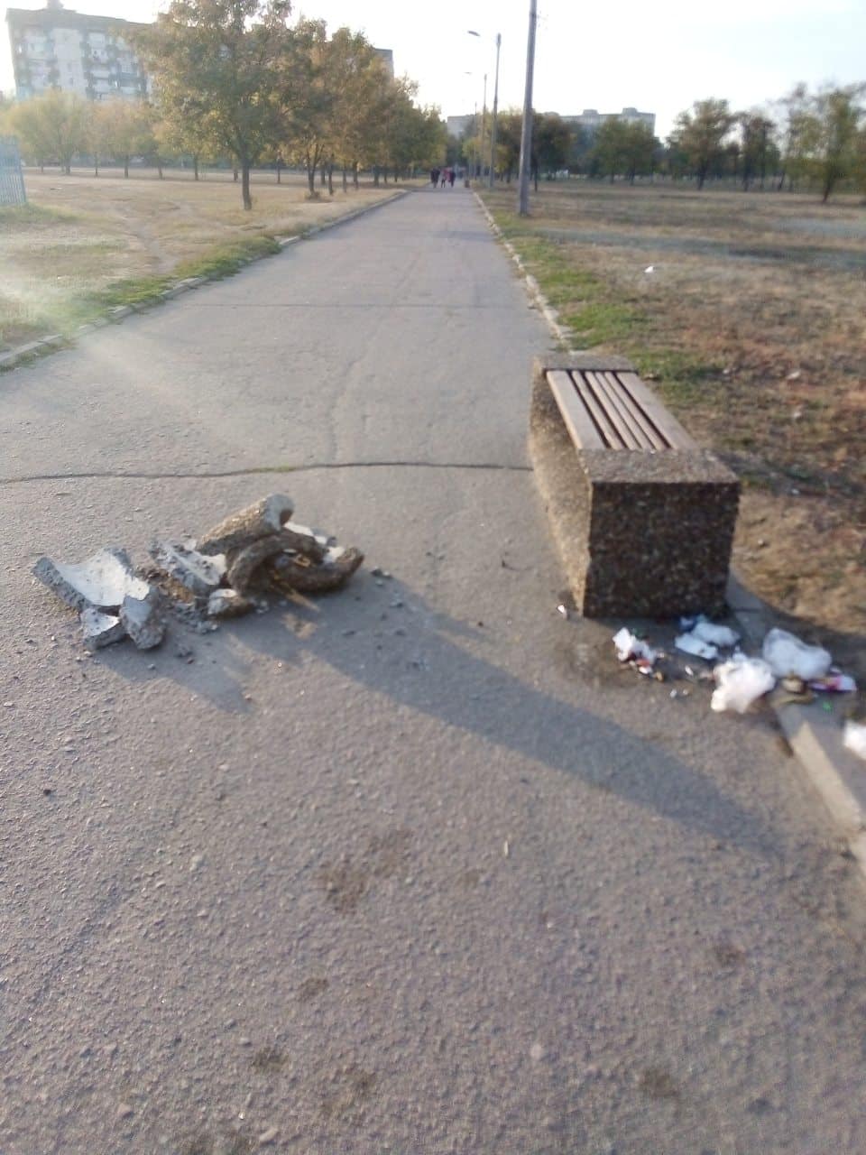 На Дніпропетровщині вандали потрощили урни і бордюри (Фото)