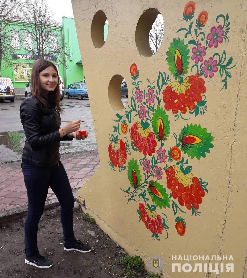 «11 квітня працівники ювенальної превенції Петриківського ВП запросили до участі у заході художниць ПТУ № 47. Дівчатка із задоволенням поділилися своїм талантом відомого на весь світ петриківського розпису та взяли участь у акції, направленій на боротьбу із рекламою наркотиків. Тим самим вони продемонстрували, що в житті людей, особливо молоді, не повинно бути місця наркотикам», – зазначили в ГУ НП України у Дніпропетровській області.