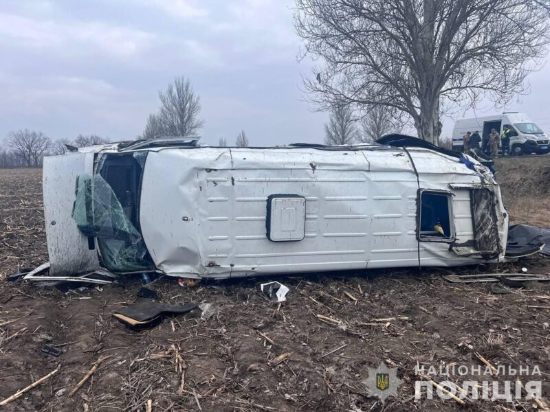 ДТП сталася 17 березня близько 12:20 на трасі у Новомосковському районі. Попередньо встановлено, що 61-річний водій маршрутного таксі «Mercedes Sprinter» не впорався з керуванням та виїхав за межі проїзної частини, внаслідок чого автомобіль перекинувся.