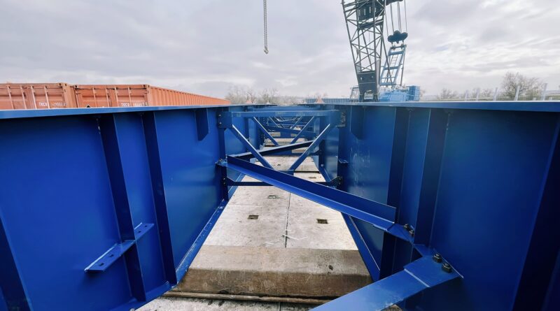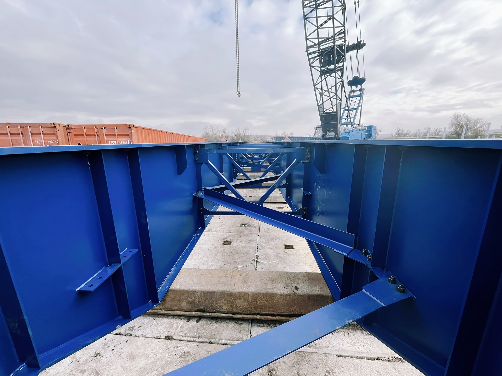 Нещодавно модульний міст довжиною 40 метрів (два прольоти) почали встановлювати на Дніпропетровщині. Уже зведено крайні та проміжні опори, змонтовано ригелі. Зараз тривають роботи зі зведення габіонної опорної стінки та збірки металевих балок. Оскільки виробником не передбачено стандартні опорні частини під балки прогонової споруди, підрядній організації доводиться виготовляти ці елементи самостійно.