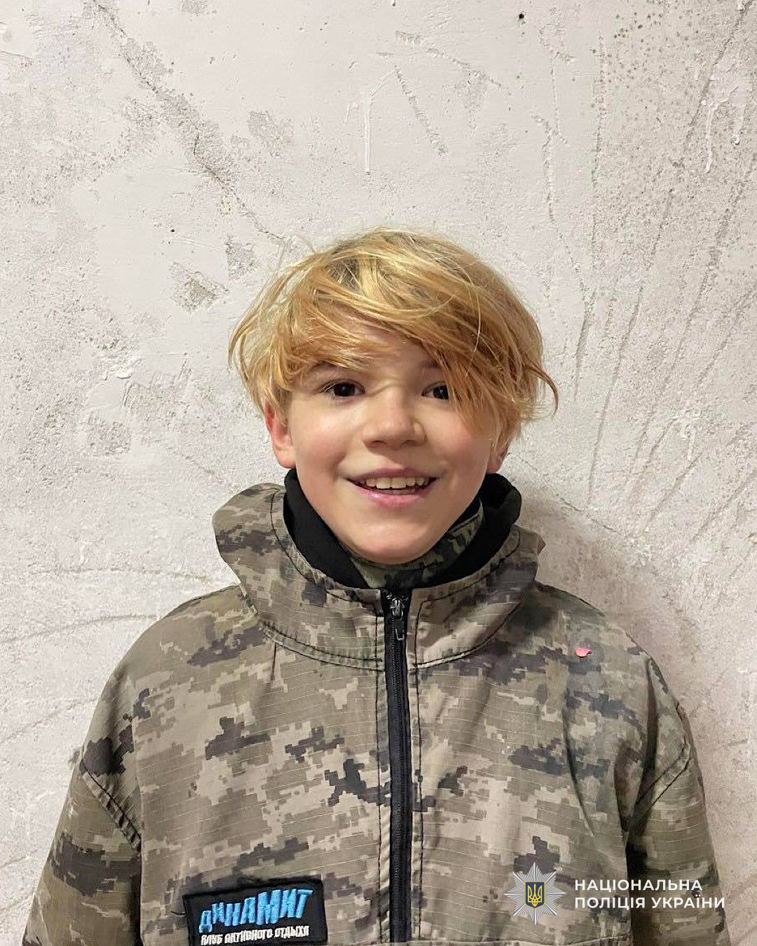 Був одягнений: жовта куртка, зелені спортивні штани, світла шапка, чорні кросівки з оранжевою смужкою.