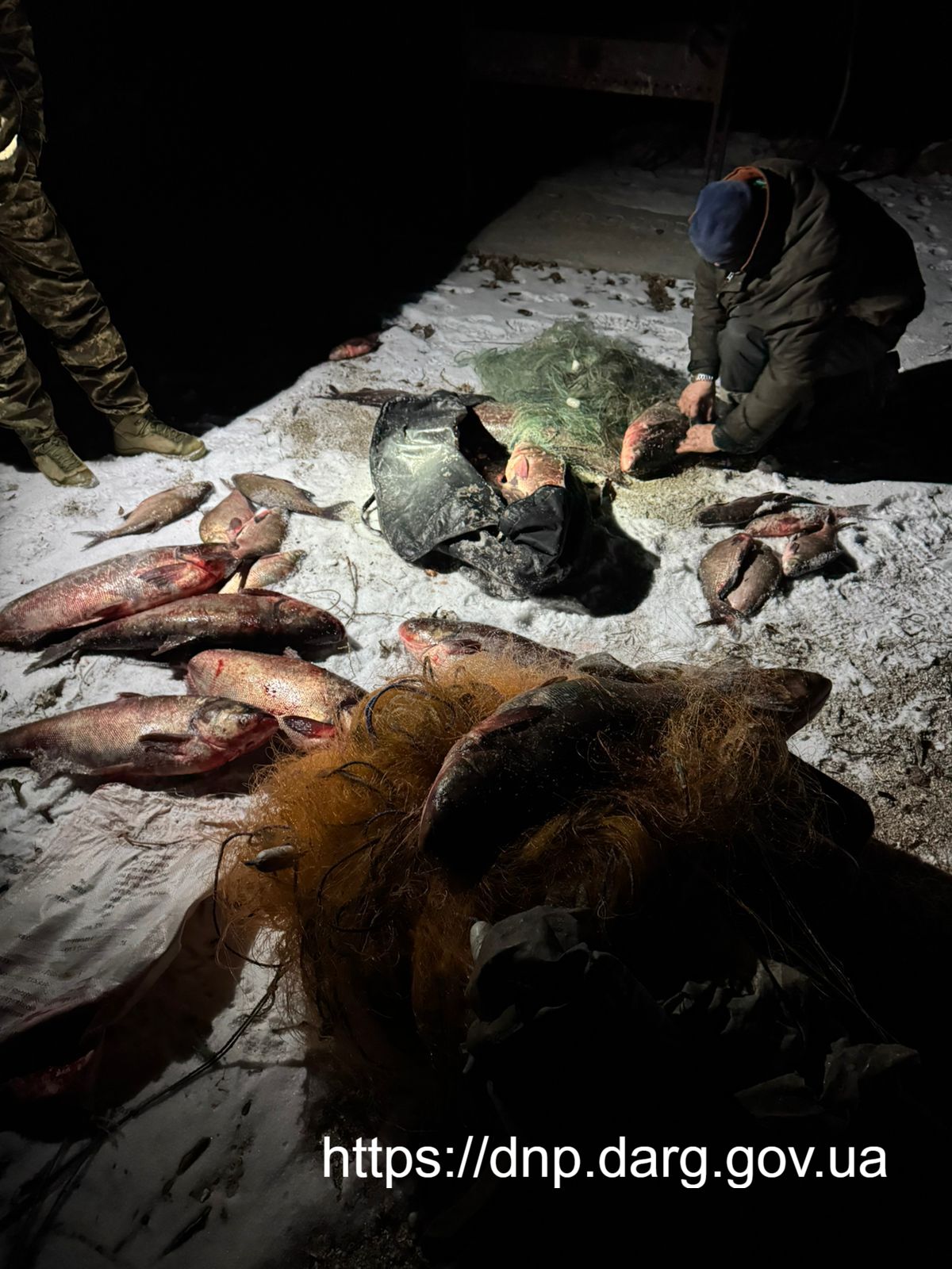 Під час огляду правоохоронці виявили: 19 товстолобів, 12 лящів. Загальна вага незаконно виловленої риби — 142 кг. Улов та сітки порушник заховав у великих сумках. Сума збитків, завданих рибному господарству України, склала 88 910 гривень.