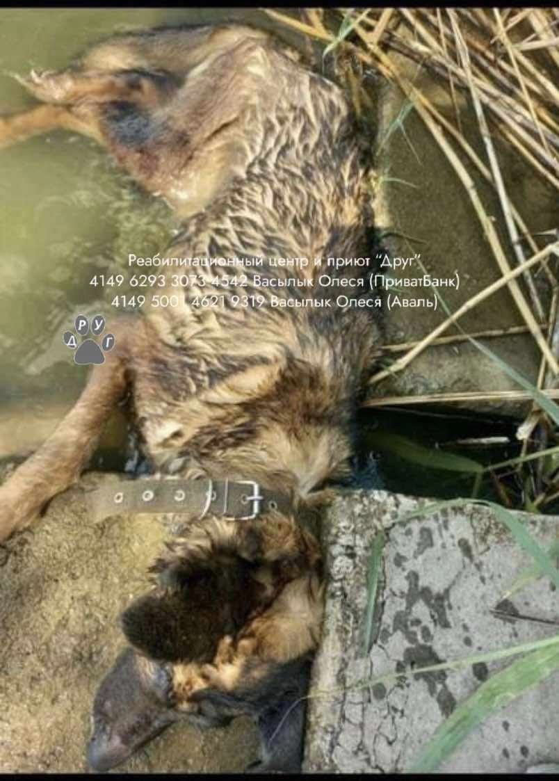 Страшне фото – собака лежить у річці, тільки голова на піску – прислали волонтерам Дніпропетровщини ввечері. Шоковані були всі від такої знахідки.